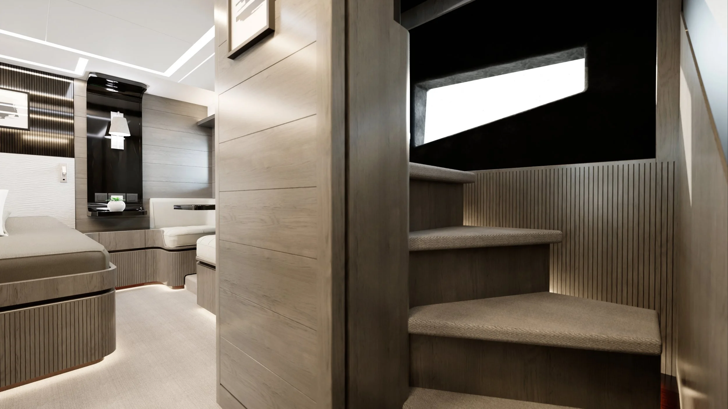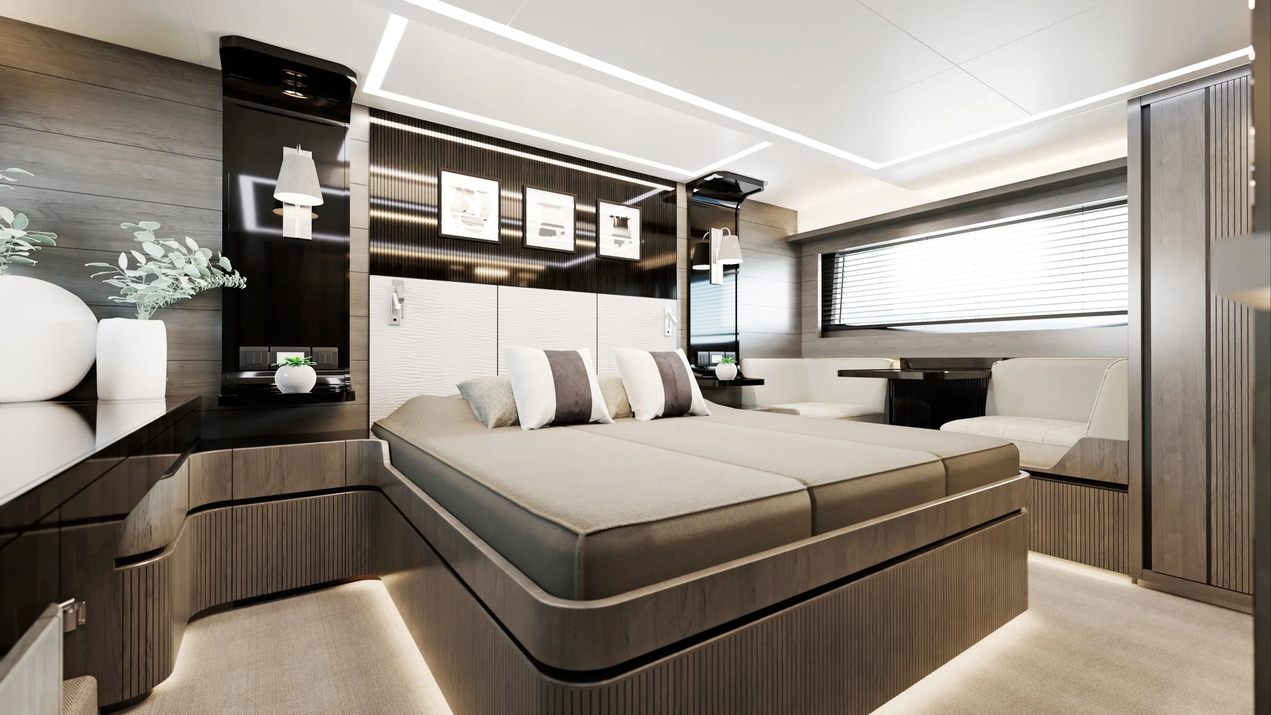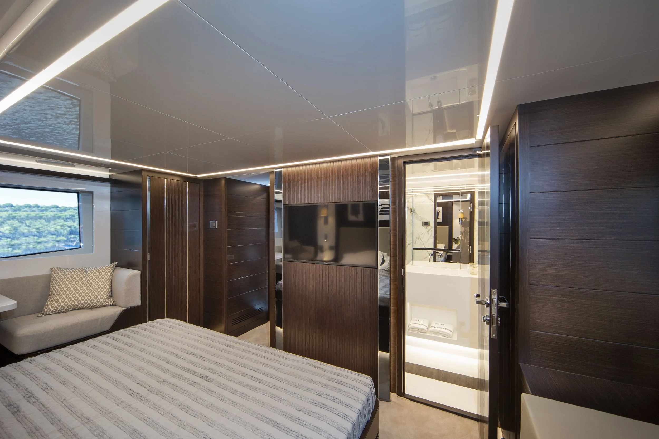Mesurant 18,6 m, le Pearl 62 est le seul yacht de cette taille à offrir un hébergement pour huit personnes dans quatre cabines, y compris une suite propriétaire de pleine largeur avec une entrée privée, ainsi qu'une cabine d'équipage ou un garage pour jet ski, au choix du propriétaire.