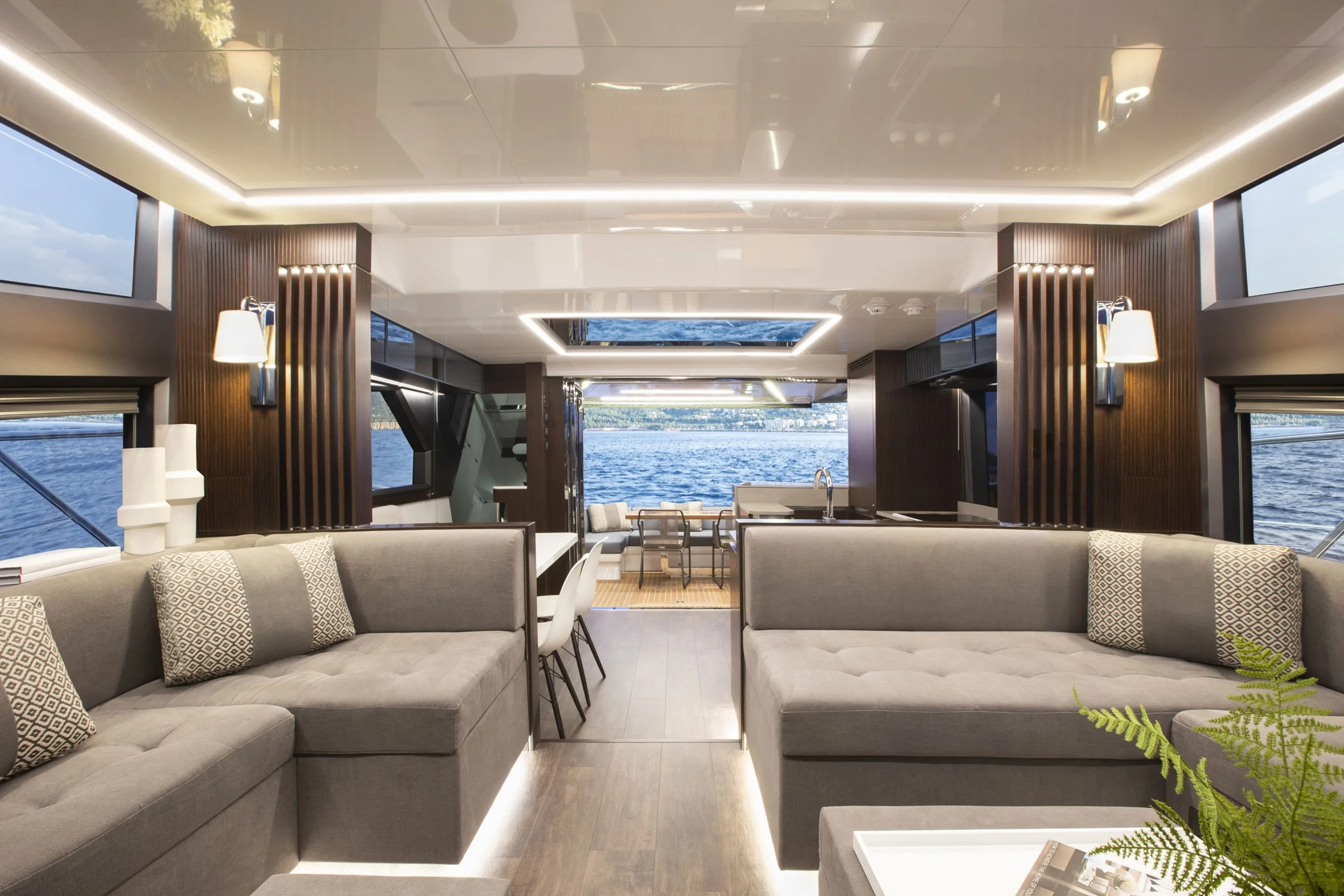 Salon de pont arrière avec table en teck
